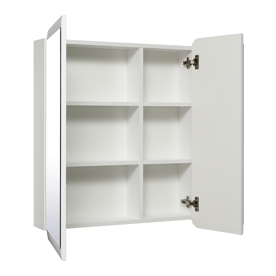 Зеркальный шкаф без подсветки c 2 распашными дверками; 2 внутренние полки; петли со встроенным доводчиком.