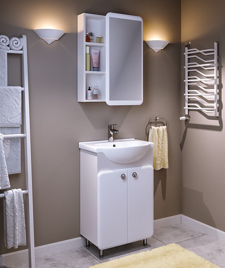 ---Зеркальный шкаф 550 мм Капри белый универсальный RUNO