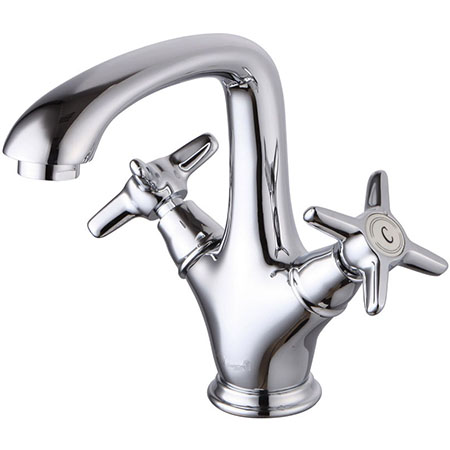 ОписаниеДвуручковый смеситель с керамическими кран-буксами (угол поворота - 180°). Аэратор Neoperl Cascade для равномерного распределения струи воды. Стойкое хромированное покрытие смесителей. Настольные смесители в комплекте с гибкой подводкой G 1/2'.