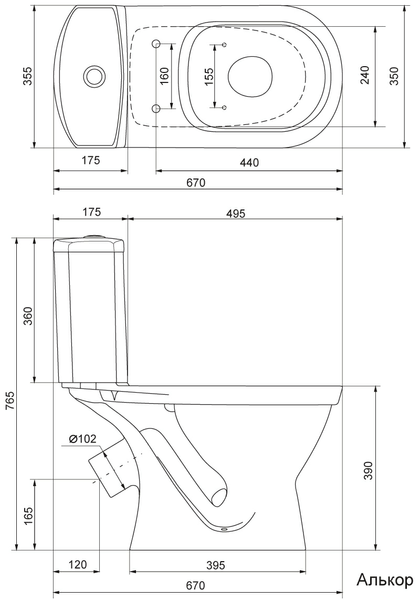 ---Унитаз-компакт SANTEK Алькор косой выпуск с сиденьем дюропласт антивсплеск