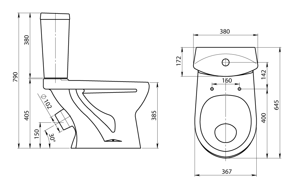 ---Унитаз-компакт SANTERI Ультра косой выпуск с сиденьем полипропилен антивсплеск