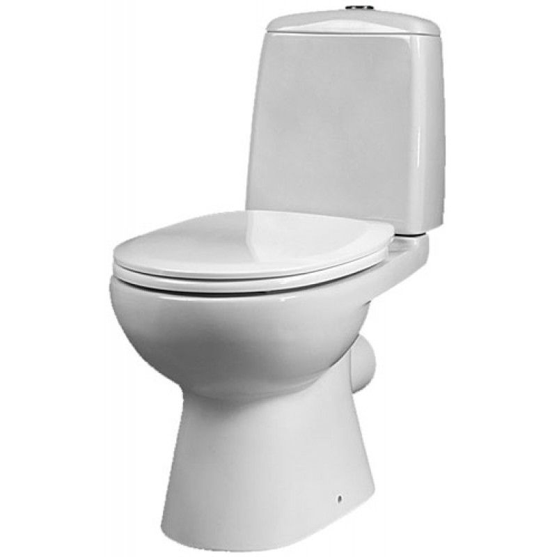 Прямой выпуск, круговой смыв. Монтируется к полу при помощи винтов. Бачок оснащен современной кнопочной арматурой производства Португалии. Сиденье жесткое с металлическим креплением (производства Германии).