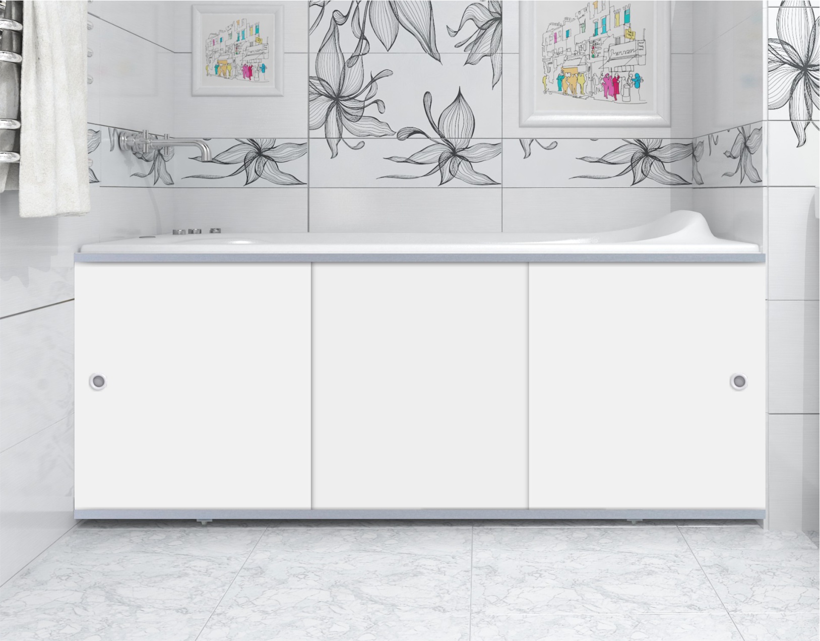 Коллекция "Премиум А" специально создана для тех, кто любит строгий лаконичный дизайн и безупречное исполнение. Аккуратная алюминиевая рама делает экран особенно выразительным, а удобное расположение ножек-распорок с внутренней его стороны позволяет без особых усилий закрепить изделие на горизонтальной плоскости. Особенность: - возможность переноса ножек в зависимости от индивидуальных особенностей сантехнических коммуникаций.