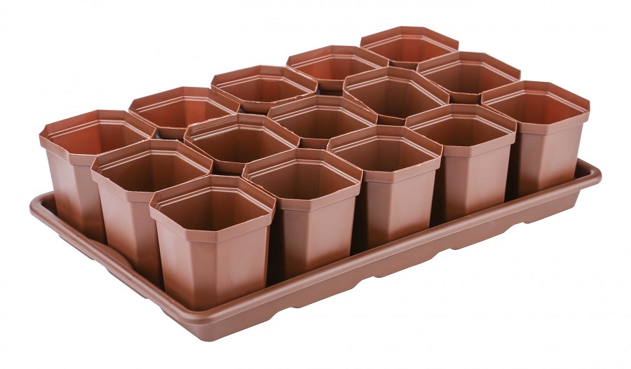 ---Горшки для рассады на поддоне 410х235х90 мм (15 шт) АЛЬТЕРНАТИВА